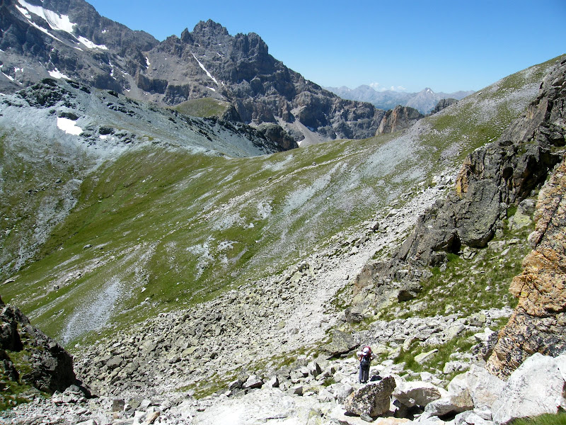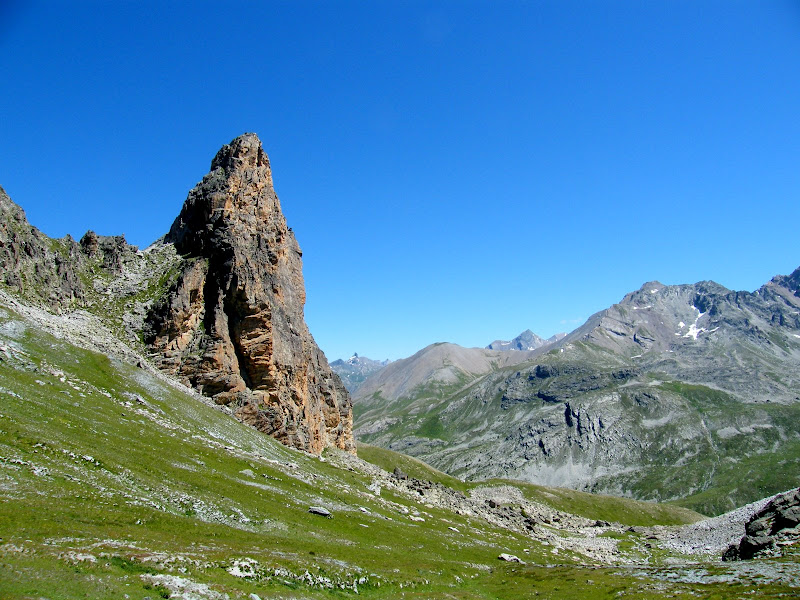 (juste au pied de l’aiguille -dans le dos- et devant moi le col et l’esplanade d’herbe qui pourrait surement faire un super déco…)