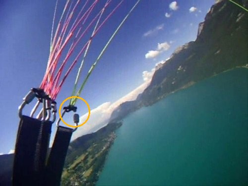Je prépare l’aile, ma passagère s’installe et nous décollons, après 10 secondes j’entends un bruit sourd associé à une légère secousse du côté droit: Vision d’horreur, le maillon à vis en inox principal (au-dessus de l’écarteur droit) vient de s’ouvrir et commence à se tordre. Je pense au pire: on va crasher dans 5 secondes, est-ce que l’on va mourir, souffrira t’on? Très rapidement, une grande honte/culpabilité s’empare de moi. Je n’ai pas envie d’être responsable de ça. C’est injuste, je suis toujours tellement prudent. Pourquoi moi.